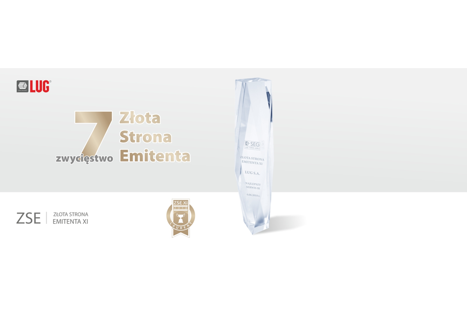 Po raz siódmy firma LUG S.A. zwyciężyła w konkursie organizowanym przez Stowarzyszenie Emitentów Giełdowych, tym razem pokonując konkurentów w łączonej kategorii dla spółek małych z rynku regulowanego i rynku alternatywnego NewConnect. Złota Strona Emitenta przyznawana jest za wysokie standardy w prowadzeniu stron internetowych i proces komunikacji spółki z inwestorami.